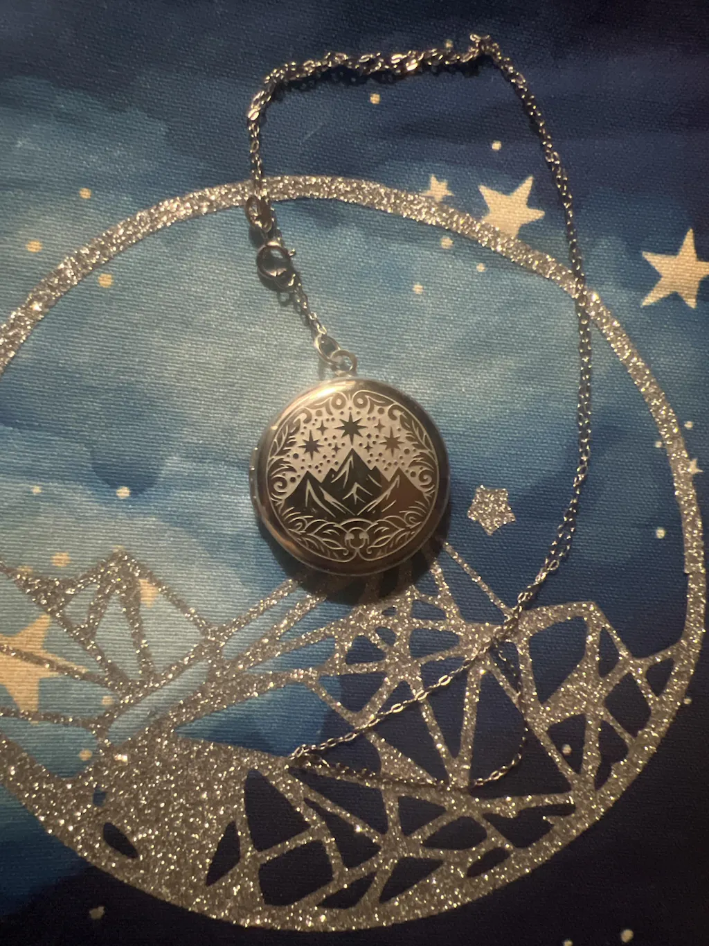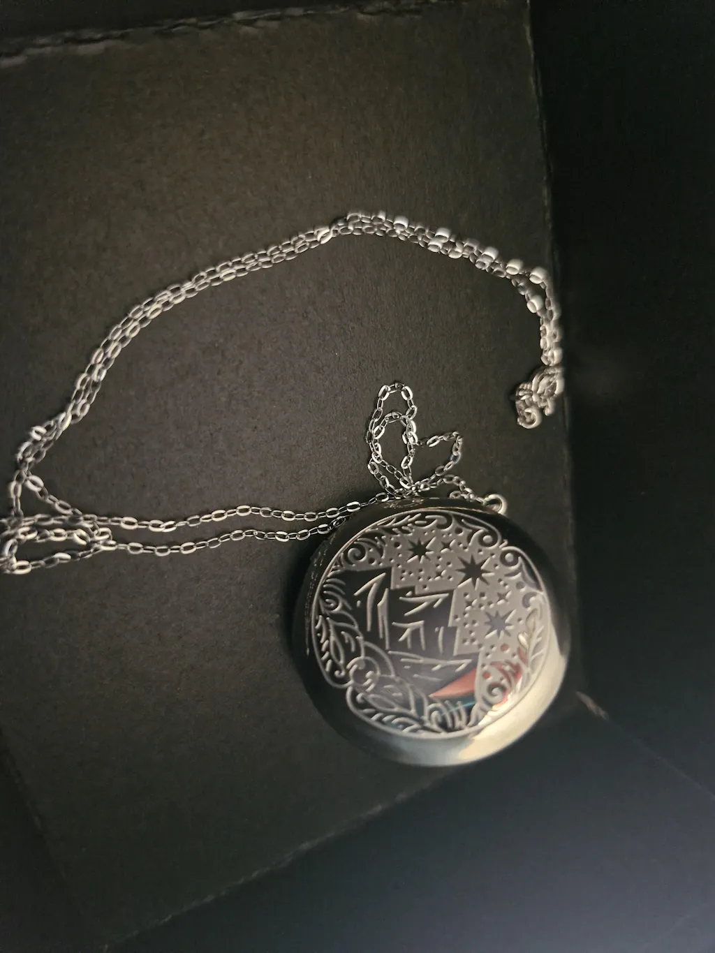 This beautiful locket necklace is a special and unique pieces of jewel for you your best friends and a perfect gift for any occasion. Made of solid stainless steel with 925 sterling silver chain the locket is inspired in Acotar book and comes in the shape of a round openable pendant with embossed Velaris skyline around a detailed ornaments.
