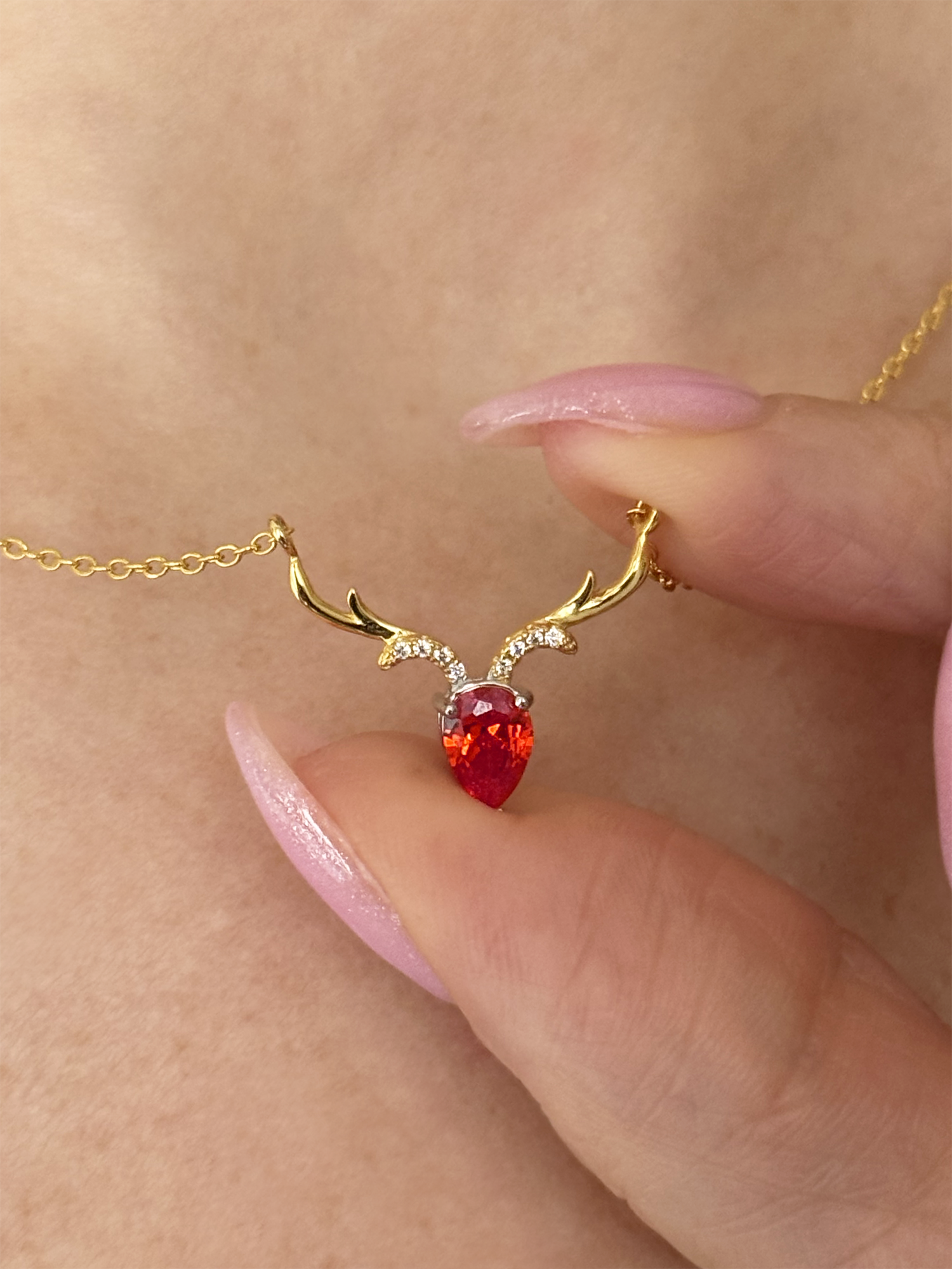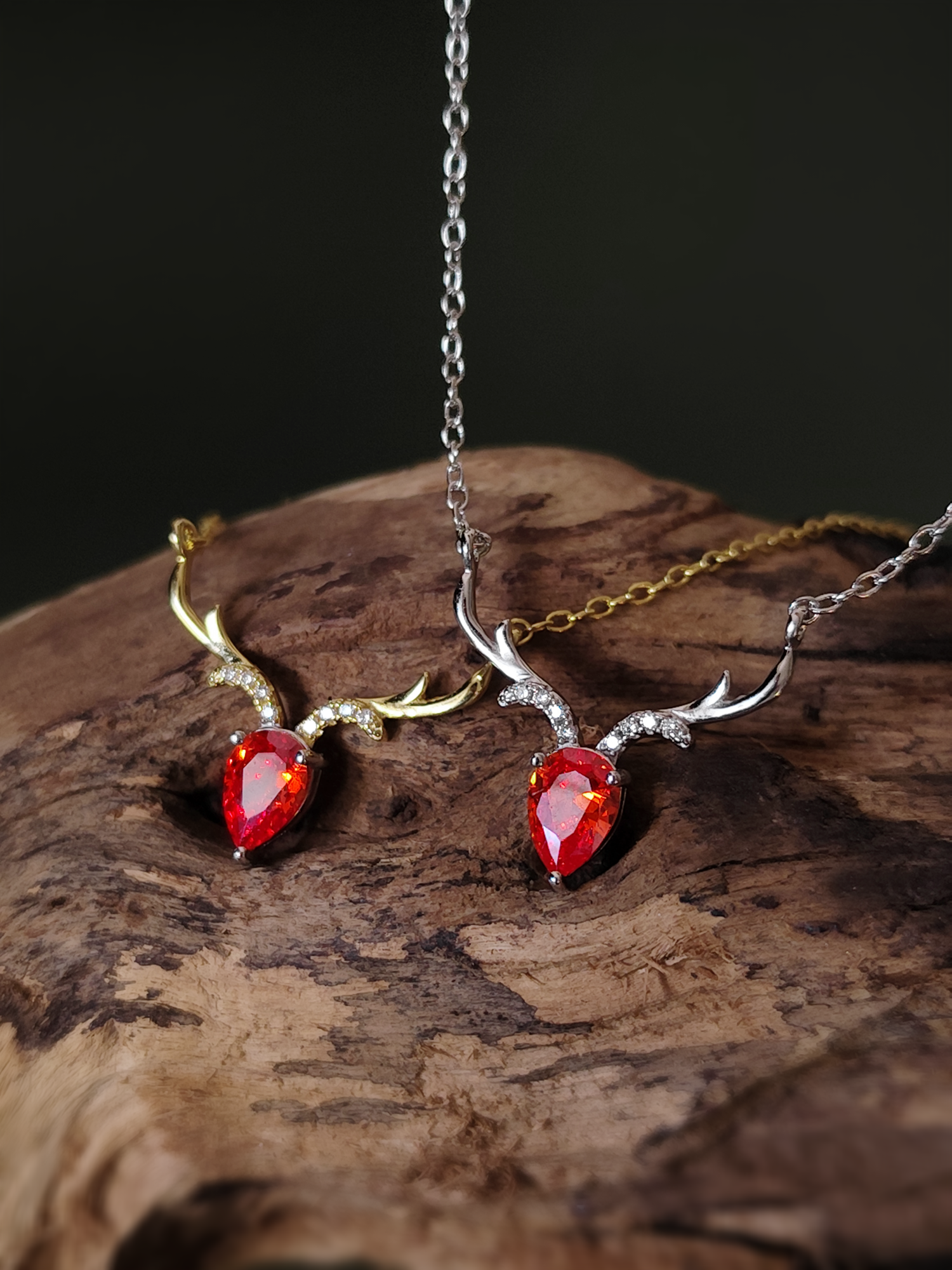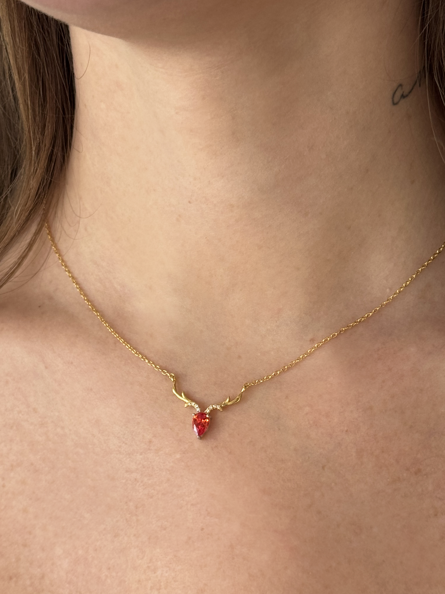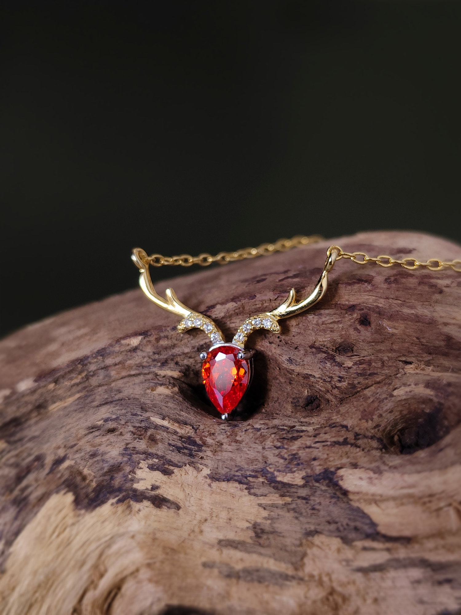 The dainty necklace comes in the shape of The Lord of the North antlers that holds a a bright and shiny fire opal gemstone, which represents his flaming antlers and an immortal glow.