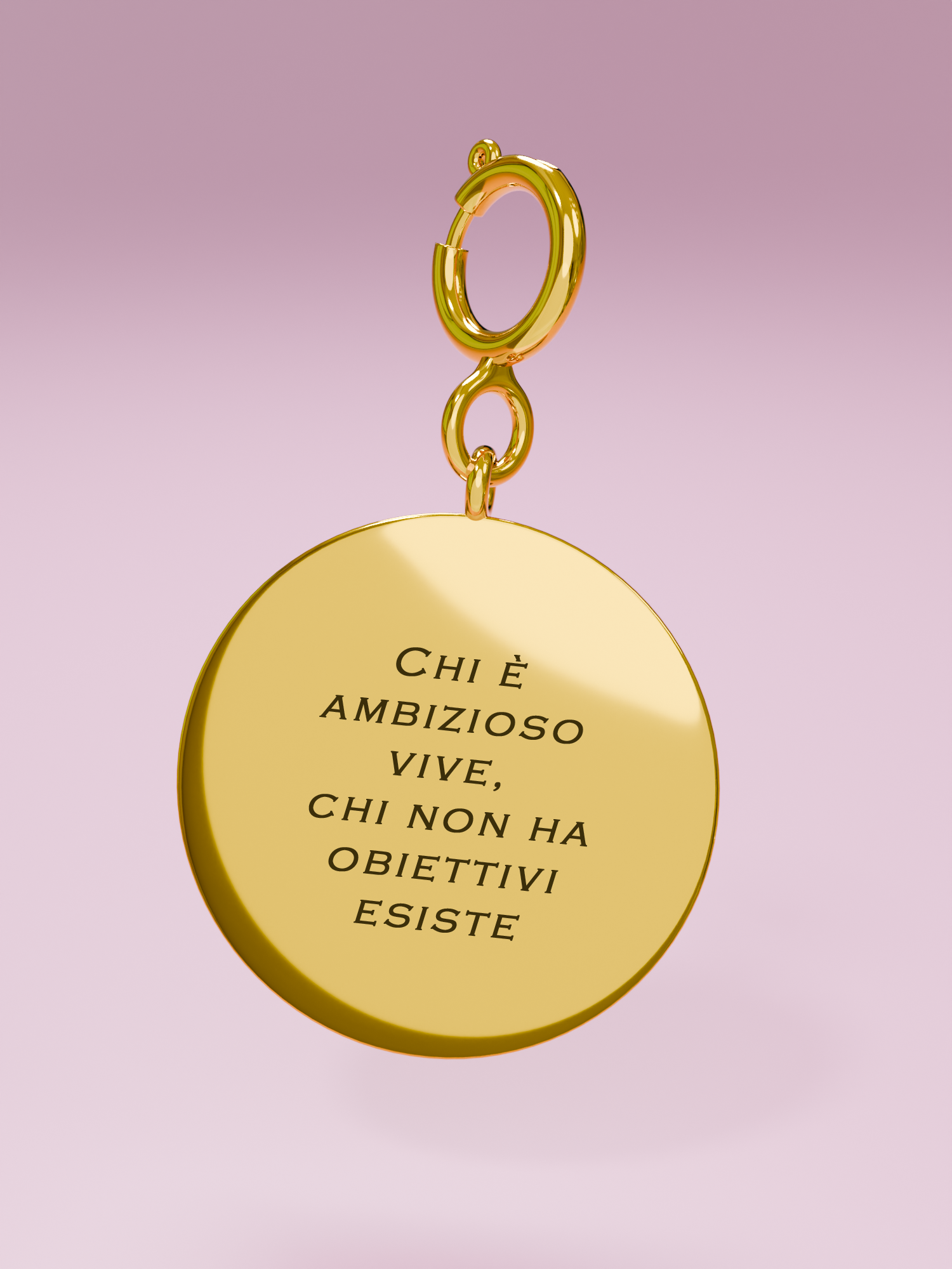 Direttamente dal Feliciaverso, la placchetta circolare ispirata al libro "Non è un Paese per Single" con incisa la frase "Chi è ambizioso vive. Chi non ha obiettivi vive".
