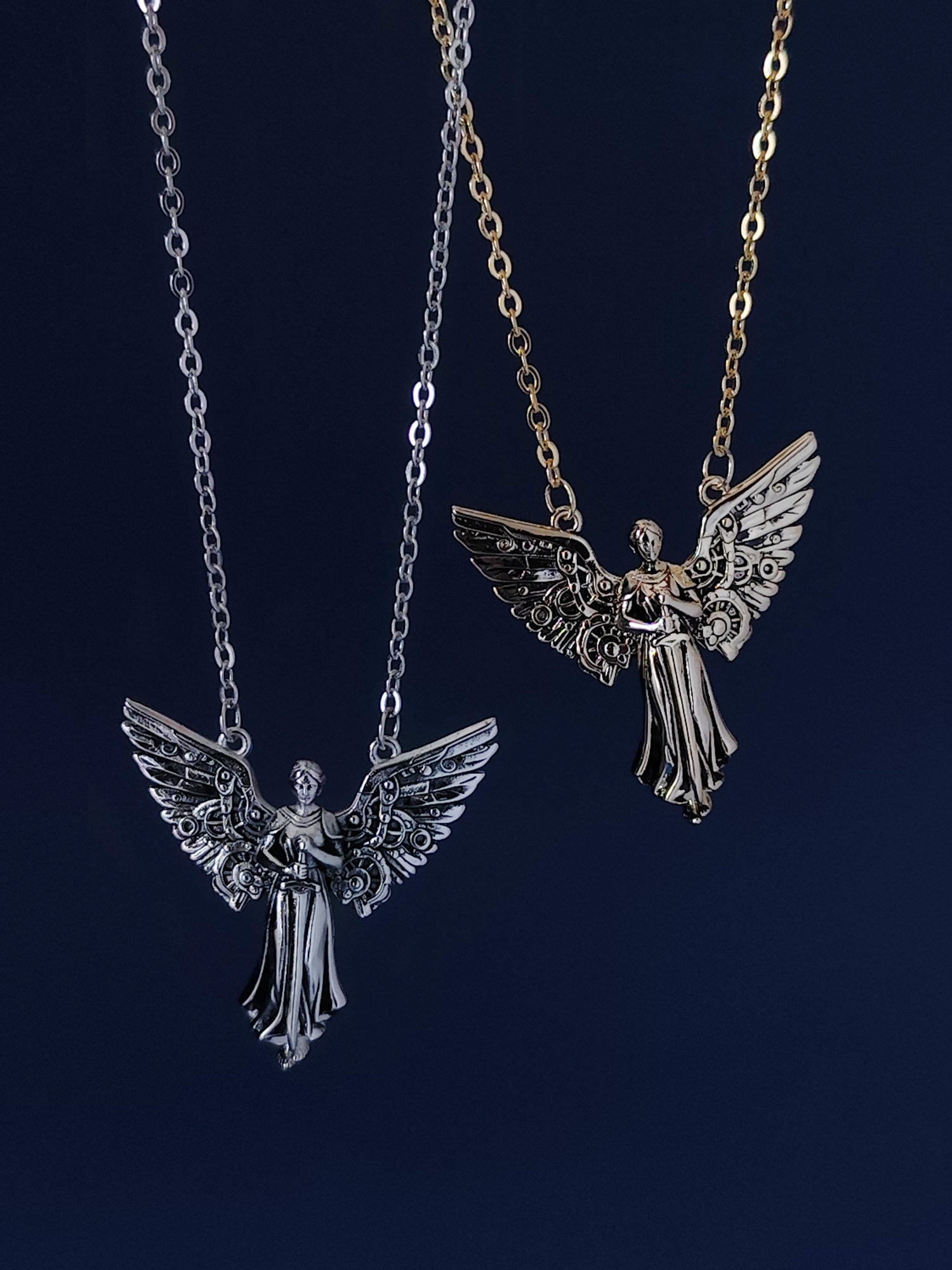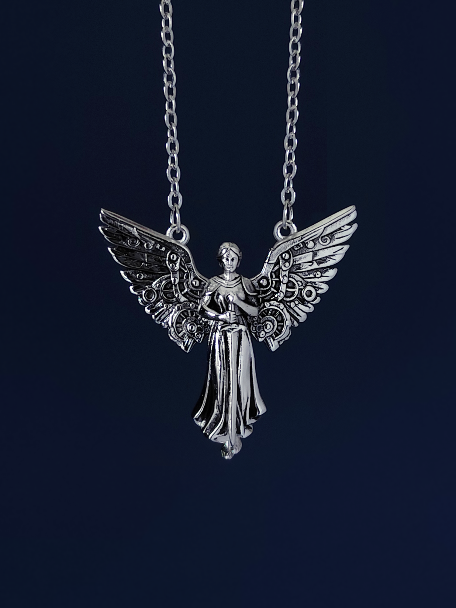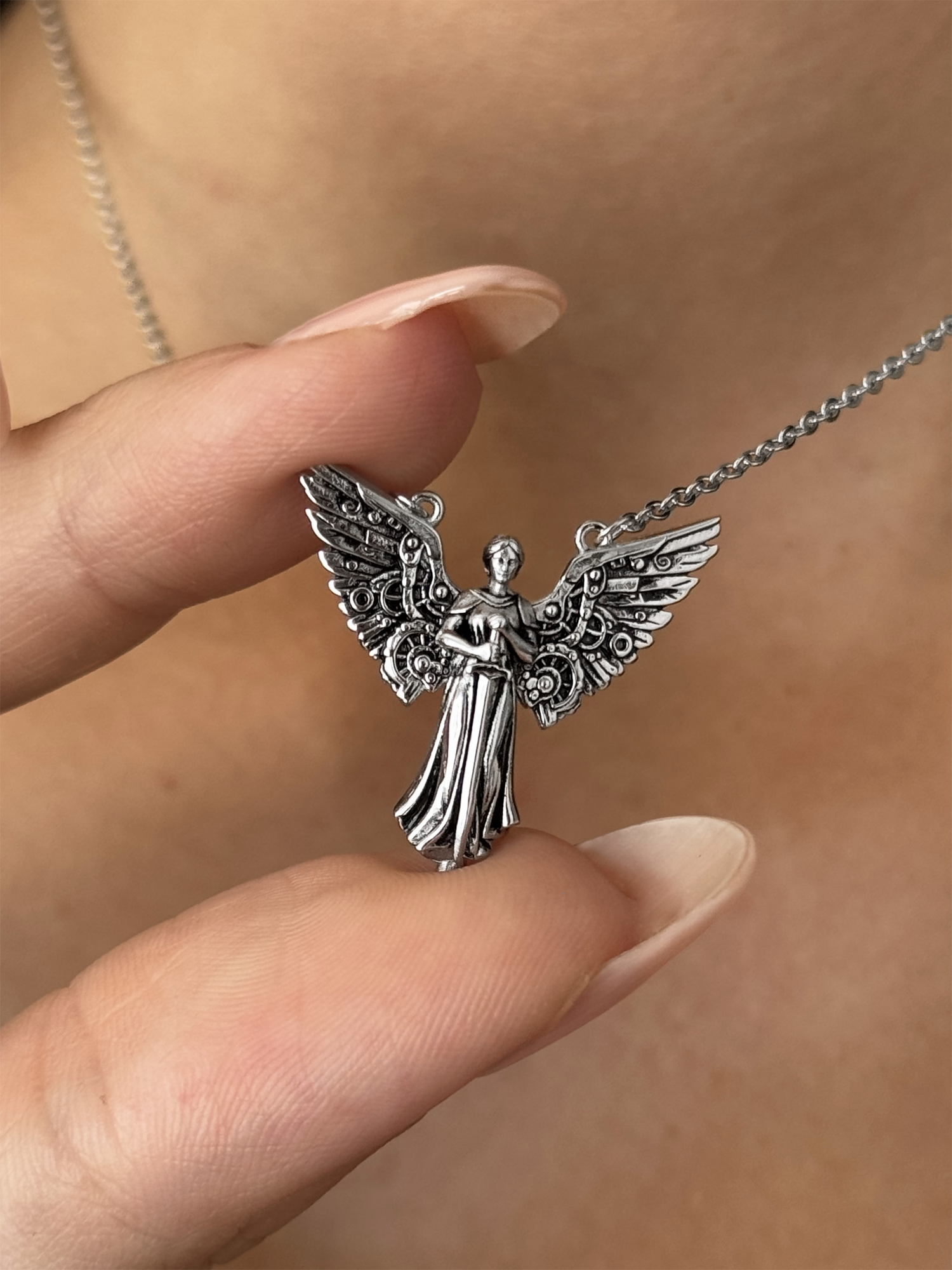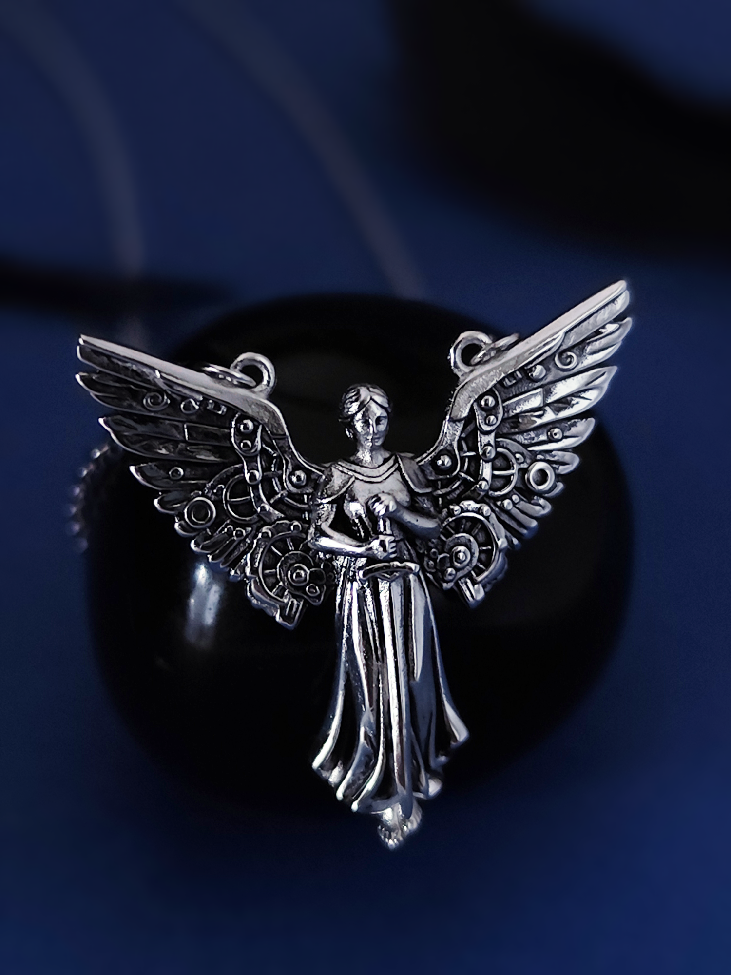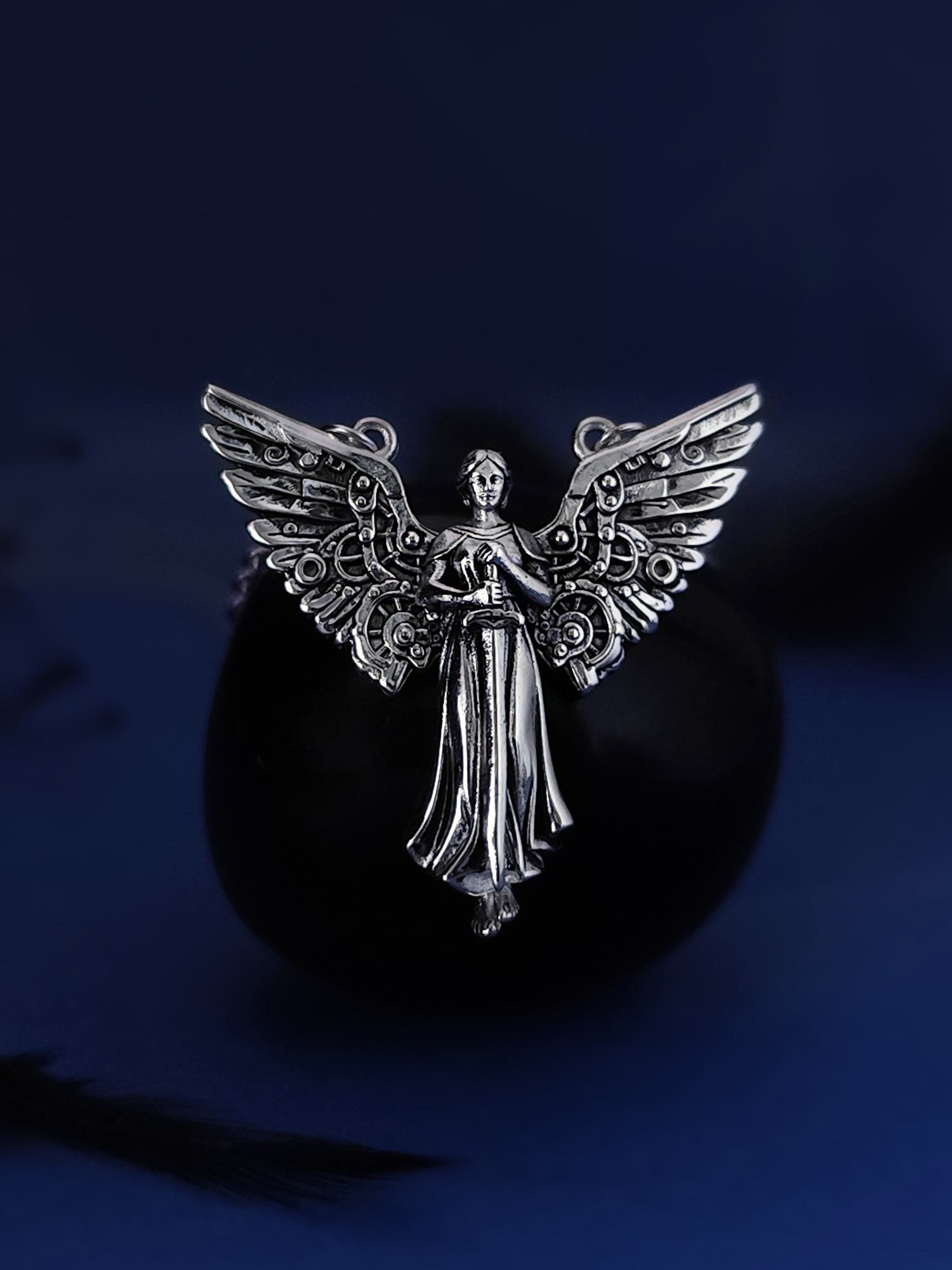 It is made entirely of sterling silver 925 with antique silver finish. The pendant comes in the shape of the Tessa's Clockwork Angel amulet. As you can see from photos the amulet is really detailes and it had the soul of the angel Ithuriel trapped inside of it in order to protect Tessa from death.
