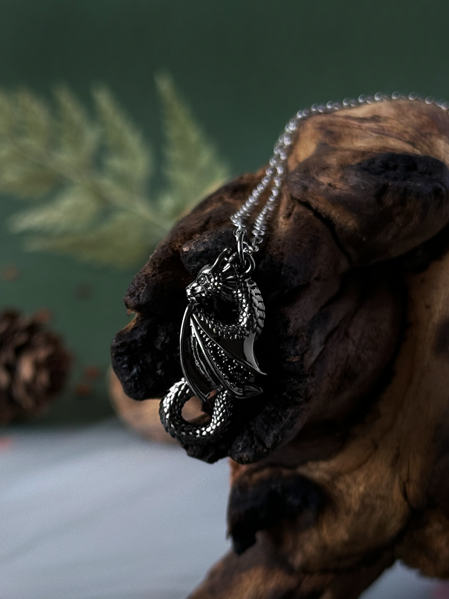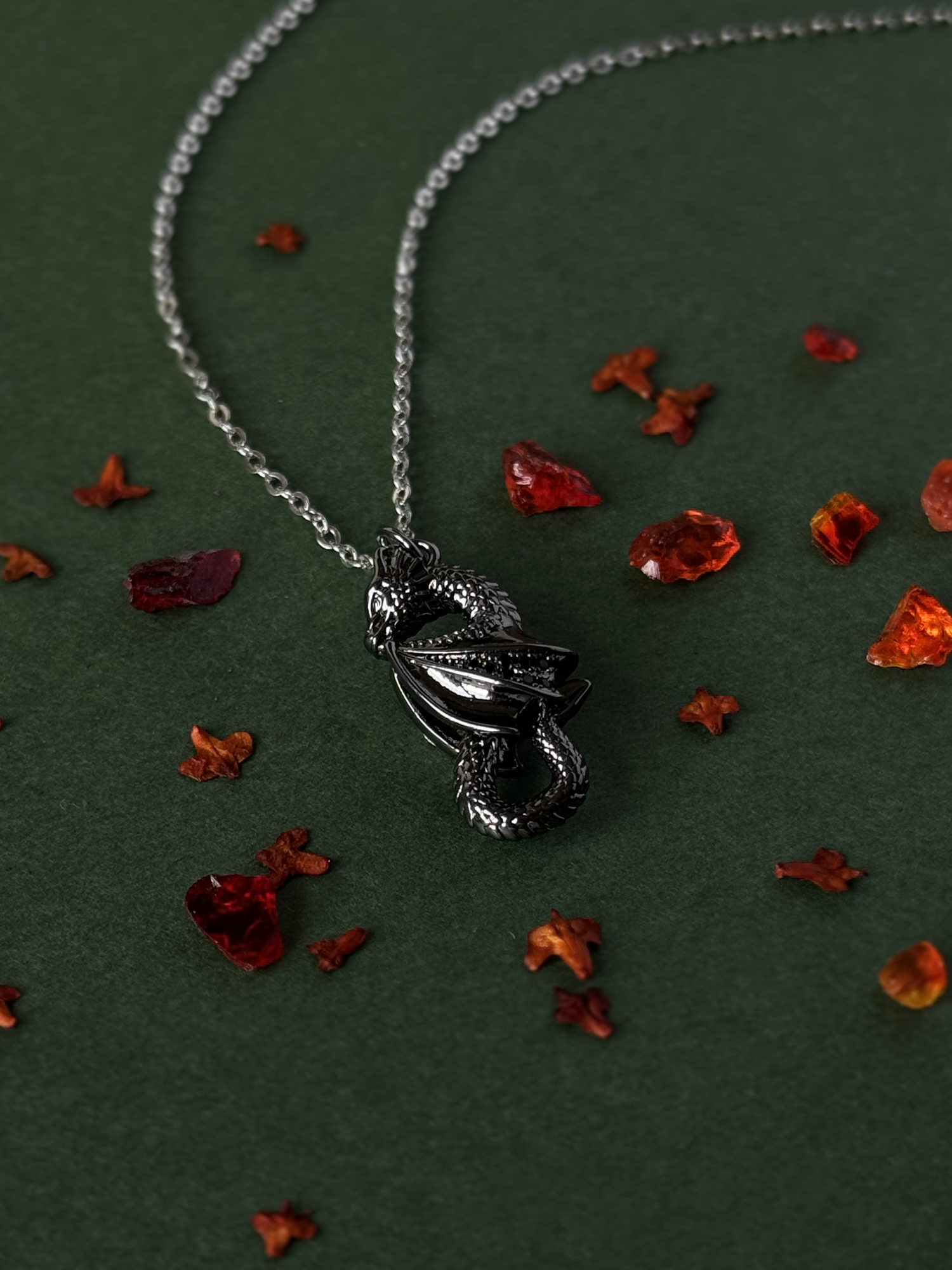 The dainty necklace comes in the shape of Manon Blackbeak's wyvern: Abraxos. On his wings small and shiny onyx zircons.