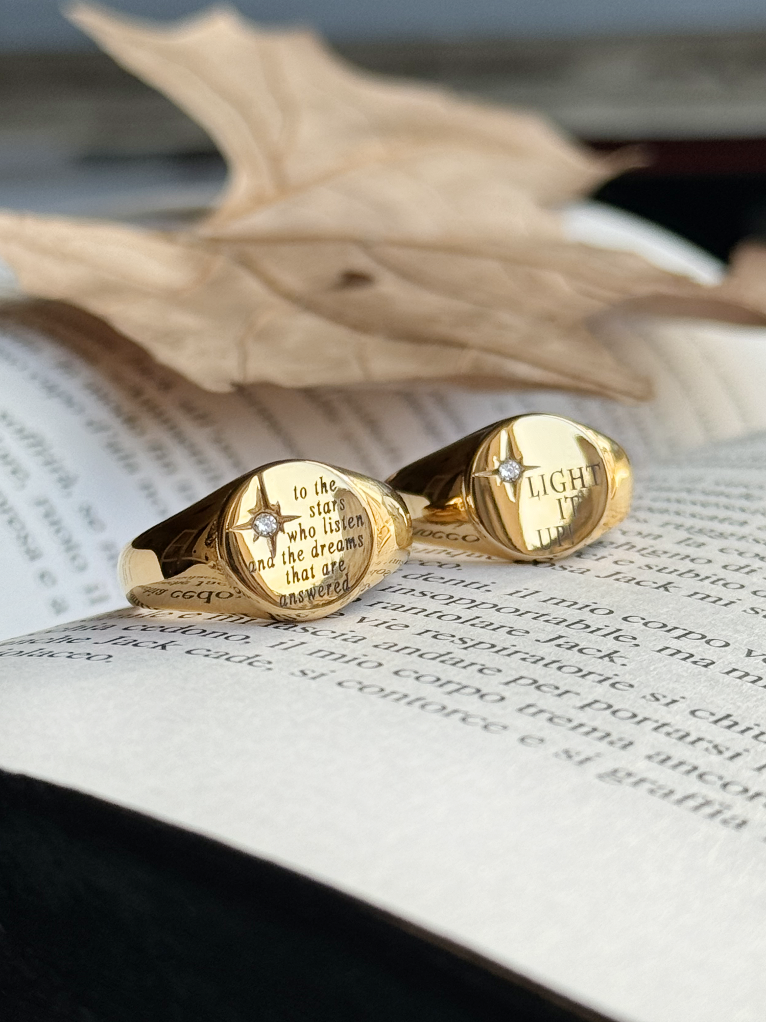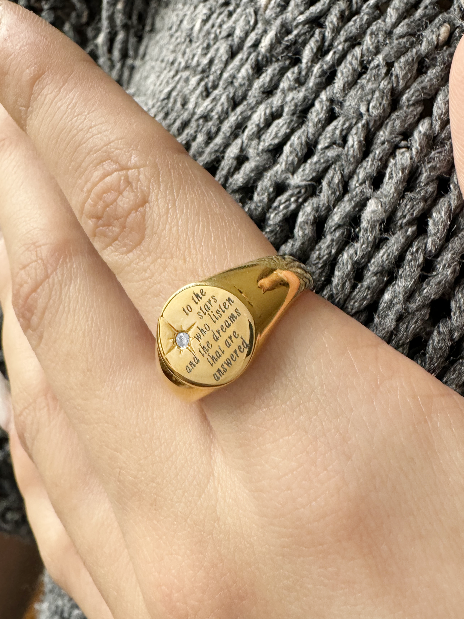 You can choose one of our favorite quote or simply customized this signet with your favorite just writting the quote you want in the customization box.