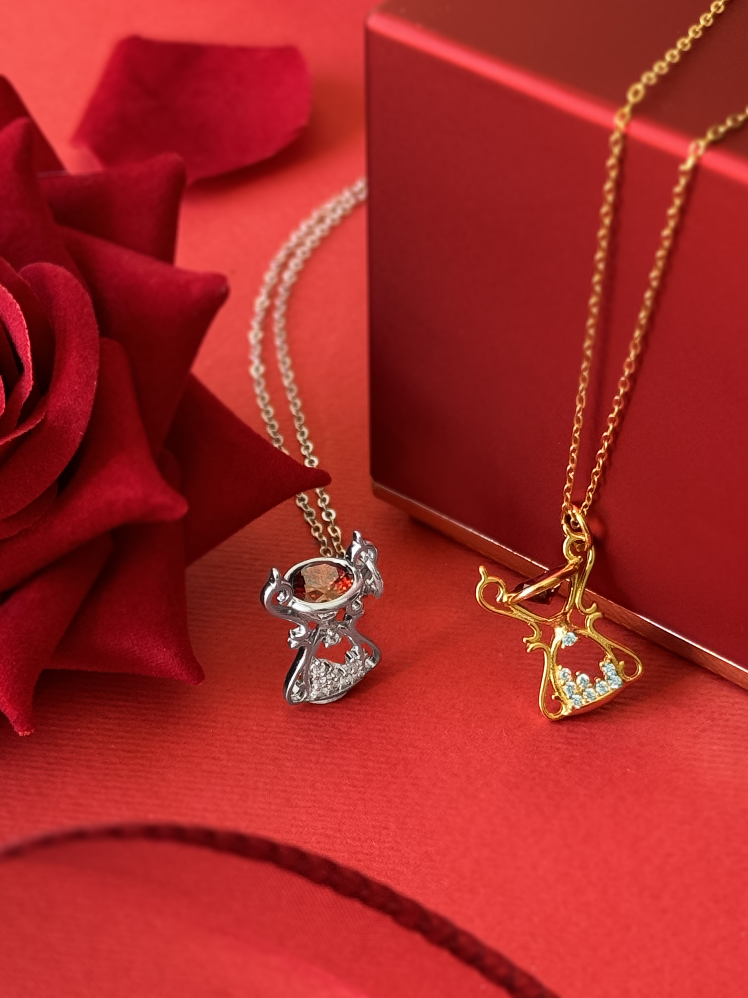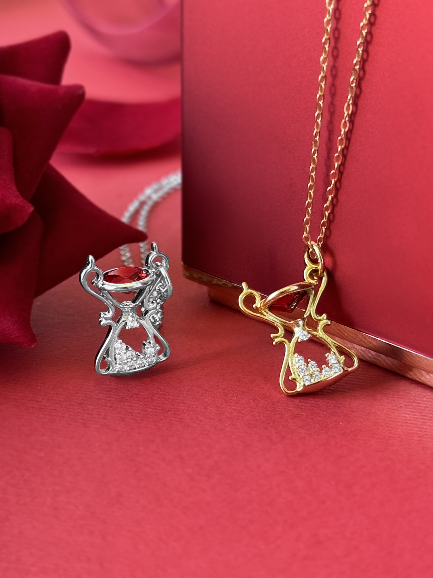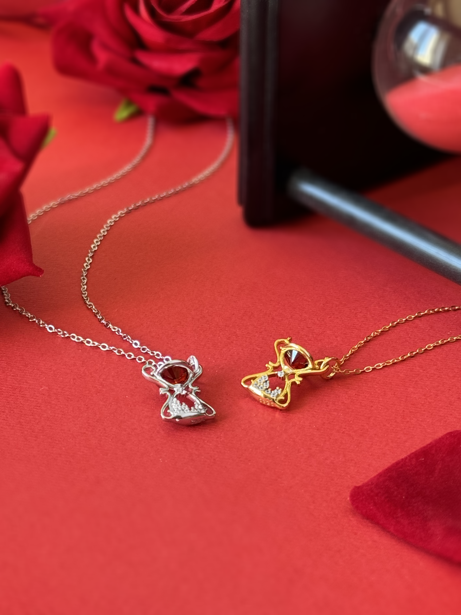These necklaces comes in the shape of a tiny hourglass with a red and white bright zircons. In caraval the hourglass is the reminder to the characters that time is always running out, and they must be fast in order to win the game.
