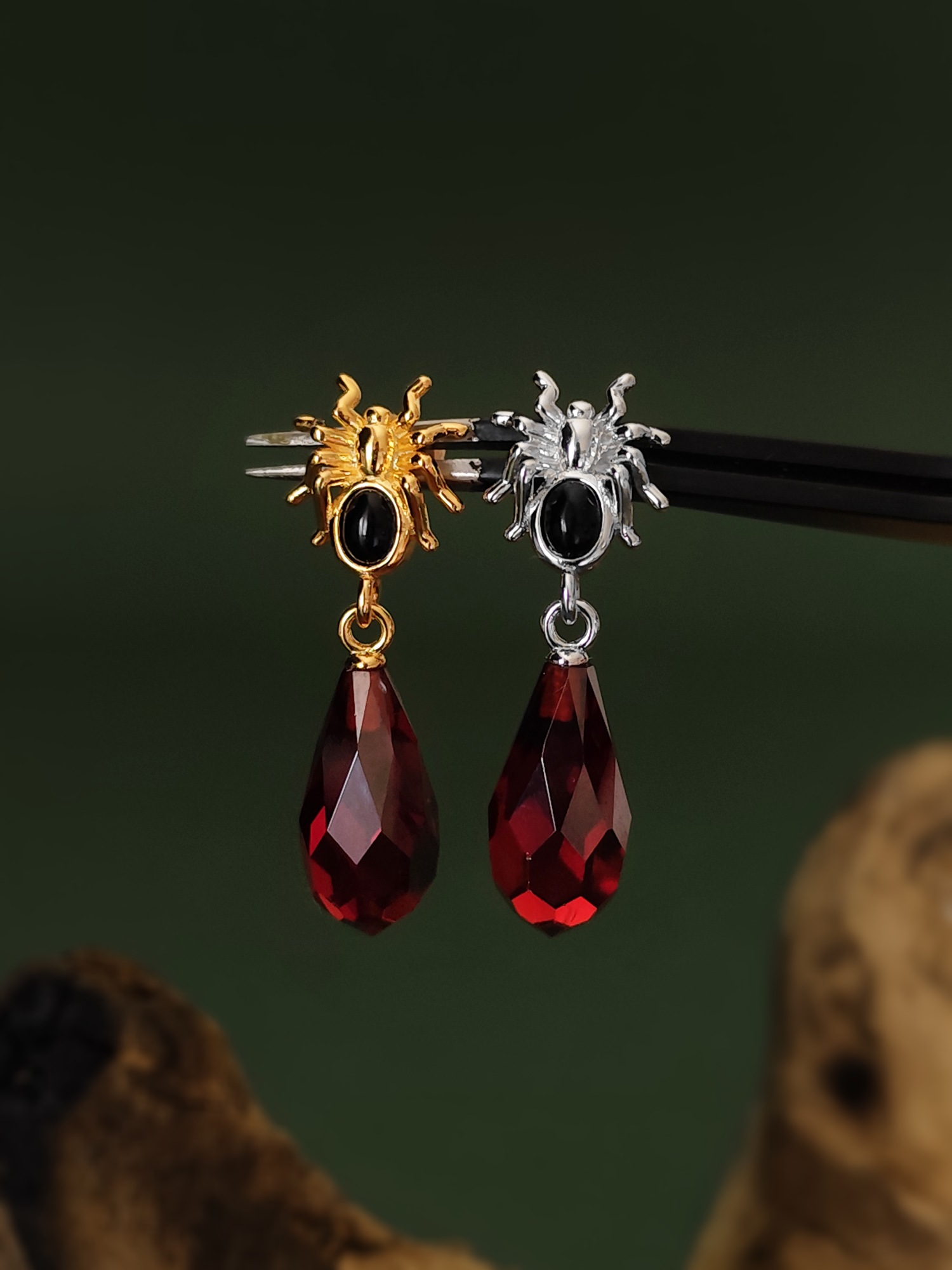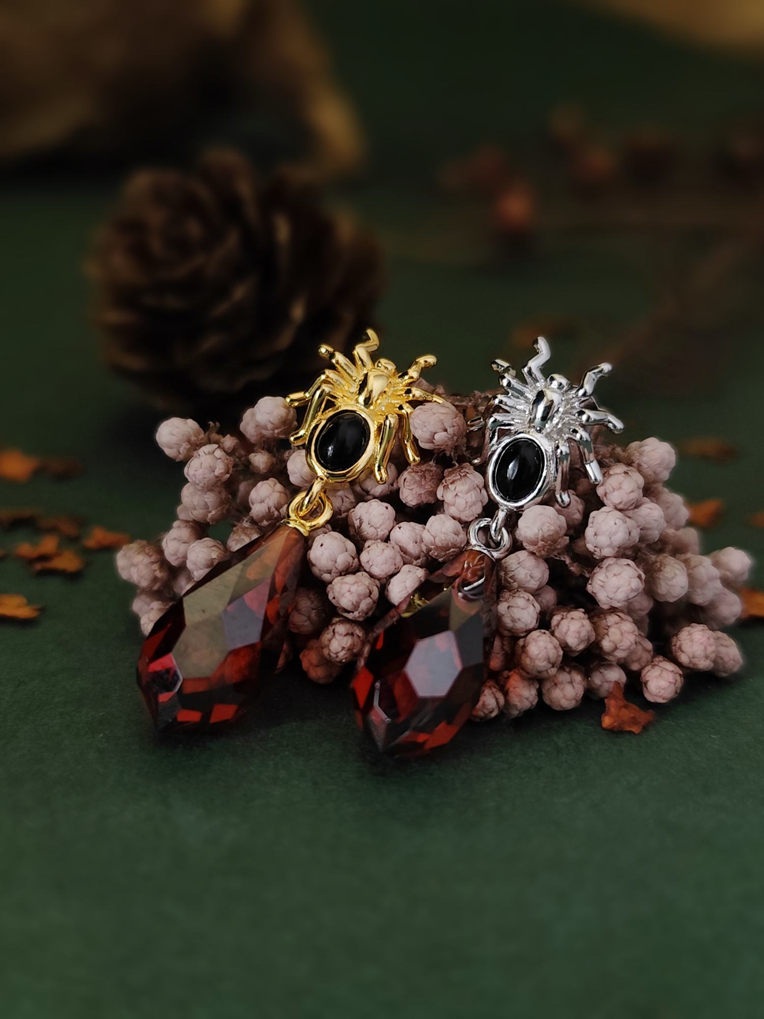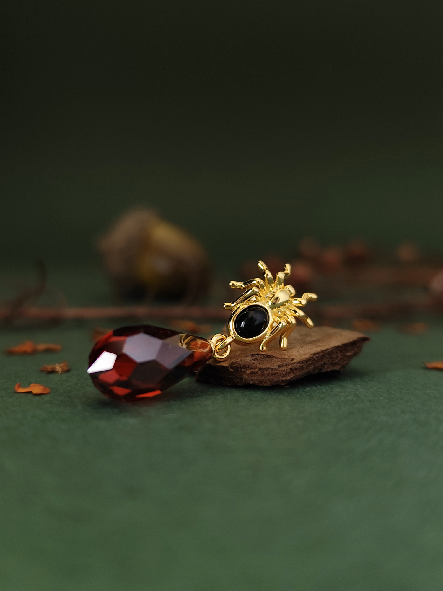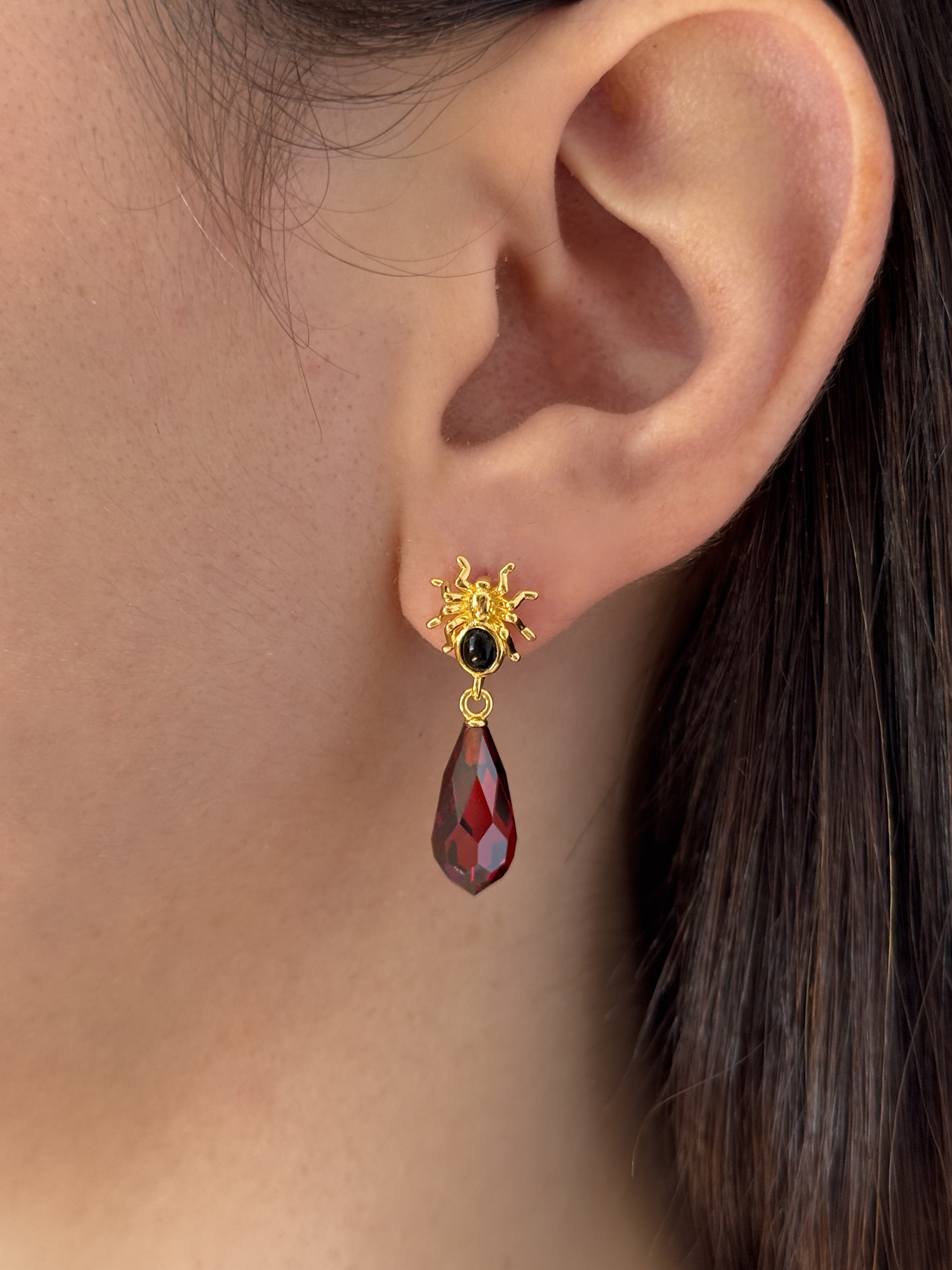 They are made entirely of sterling silver 925 plated 18k Gold with a red ruby faceted teadrop. The earrings comes with the shape of a spiders like the ones that Grimsen gift to Cardan.