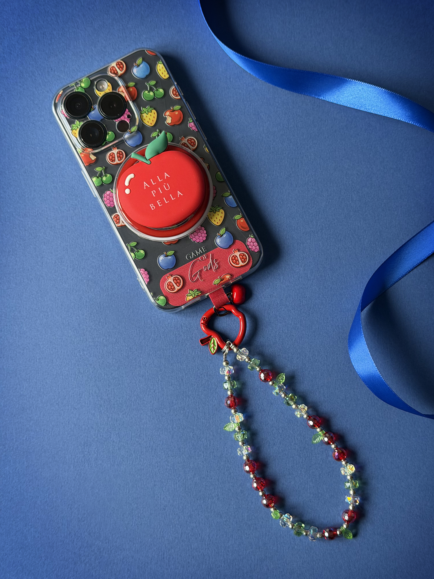 - Wrist strap con cristalli e piccole mele.