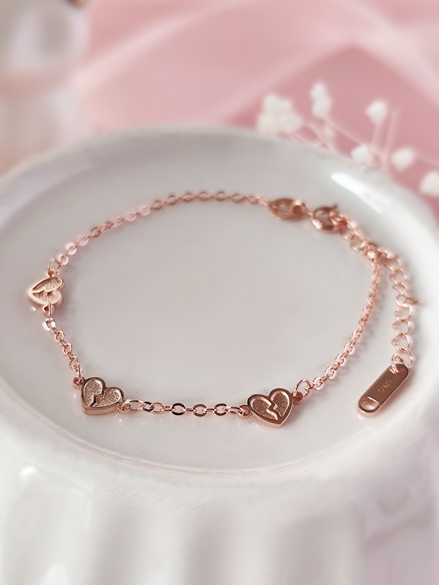It is made entirely of sterling silver 925 with three little broken hearts like the same from Evangeline Fox mark that Jacks left on her wrist when he bit her.