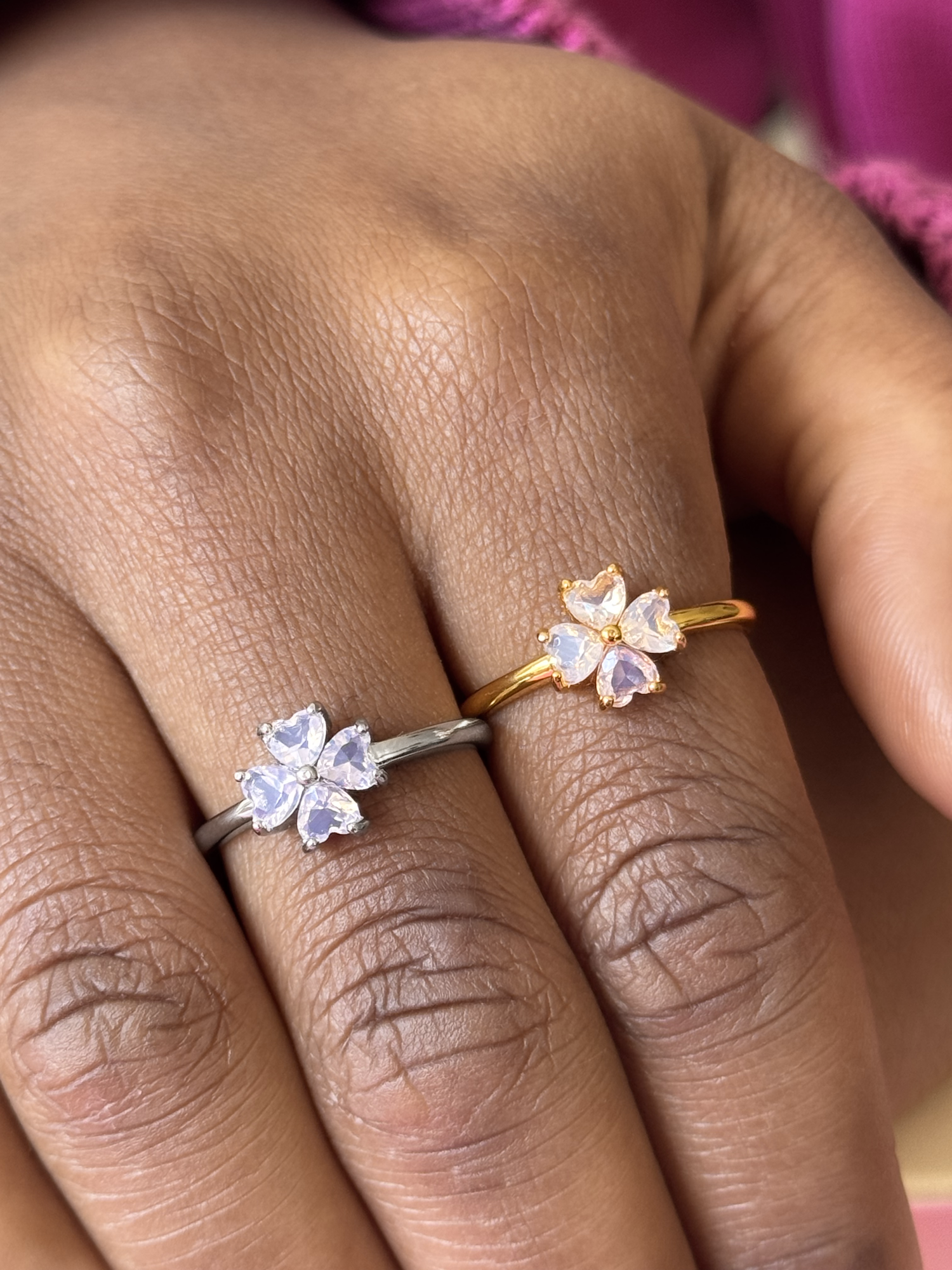 Now you can wear Flora's flower ring with this beautiful and dainty ring. The Ring is resizable (so it can fit any size) and is made of solid sterling silver 925 and embellished with pink quarz color stones.