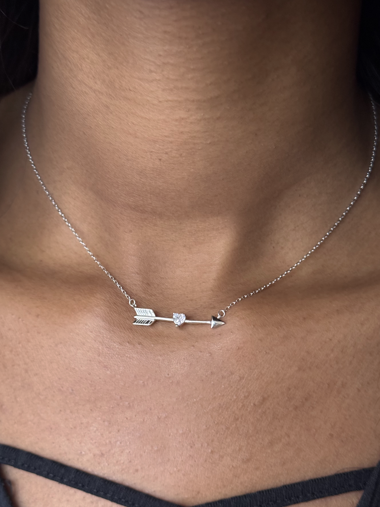 It is made entirely of sterling silver 925 with a super bright clear swarovsky crystal. The pendant has the shape of Paedyn and Kai arrow with a small clear faceted heart. The pendant is available in 18k gold color.